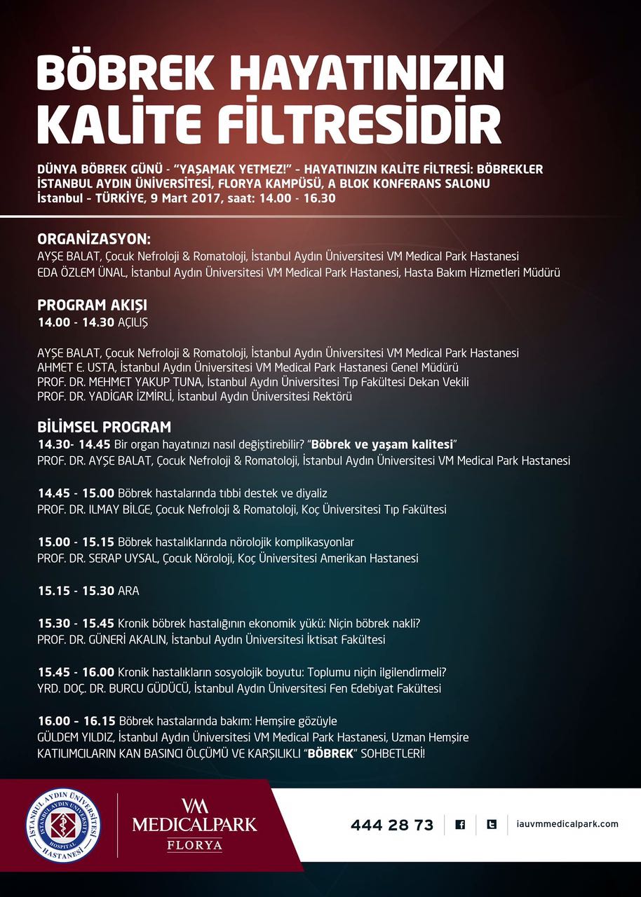 DÜNYA BÖBREK GÜNÜ "YAŞAMAK YETMEZ!" HAYATINIZIN KALİTE FİLTRESİ: BÖBREKLER-2017